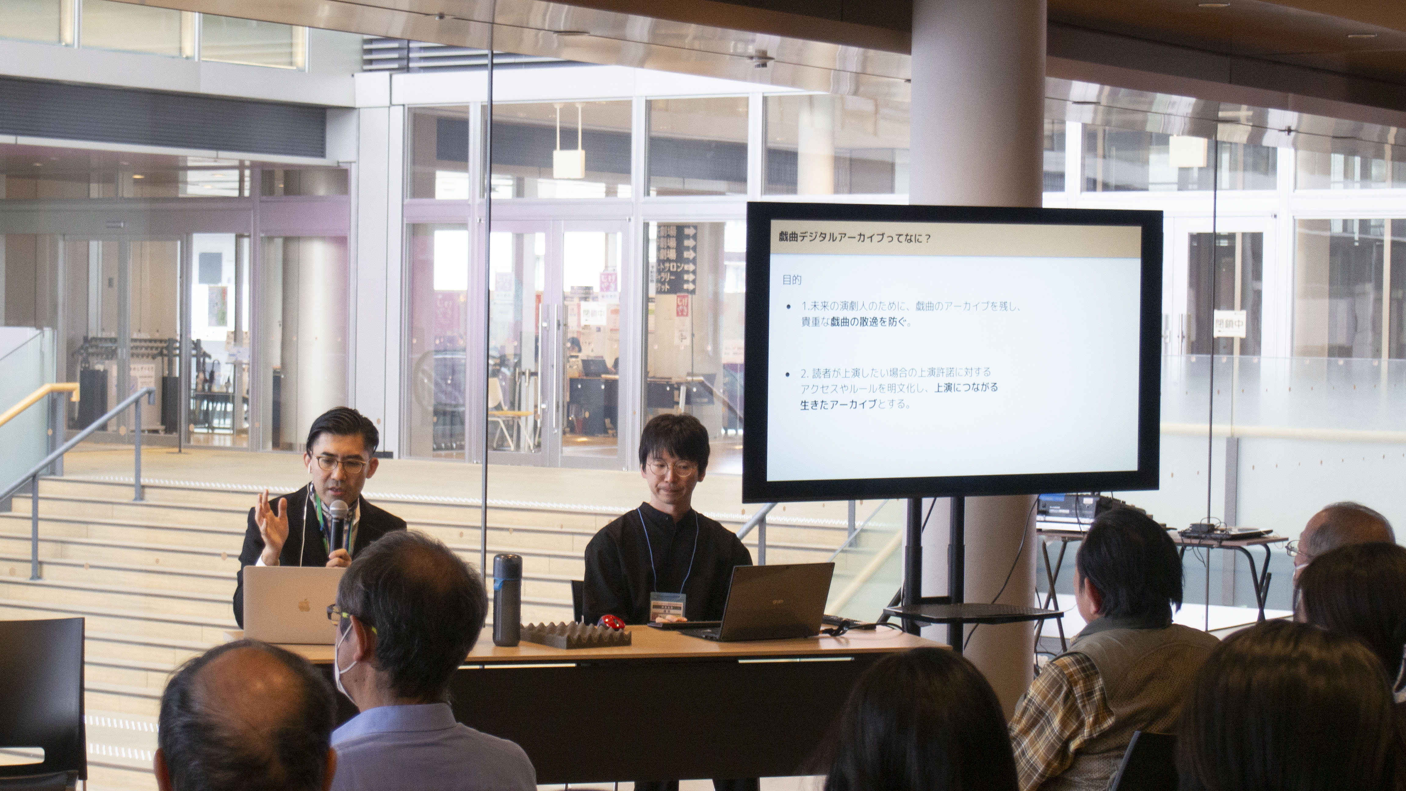 戯曲デジタルアーカイブの歴史や現在の利用状況、そして今後の展望などについてトークを行いました。